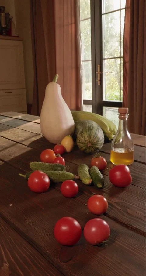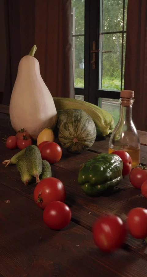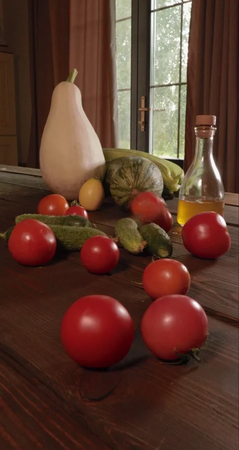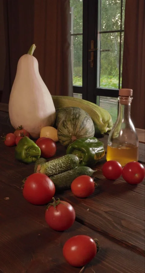 (20)vegetables, vegetable oil, oil, bottled oil, olive oil, tomato, cucumber, salad vegetables for salad, salad, summer vegetables, harvest, ripe vegetables, harvesting, wooden table, vegetables for wooden table, eco, eco farm, eco vegetables, healthy nutrition, proper food, vertical, Vertical shooting, P5Vertical