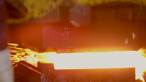 (30)forging. metal piece shaping. automatic drop hammer giving it a tool shape. Open die forging. metal hit by a hammer on a mould cast machine tool component part. forging factory. Cnc Machining Turning Machine High Precision Coolant Liquid On Metal Component.