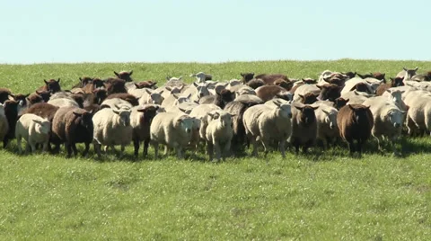 Sheep, agriculture, animal, eat, eating, farm, field, food, grass, green, group, nature, pasture, running, walking, wild, wool