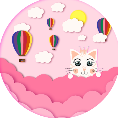 Cute Cat In The Clouds With Balloons