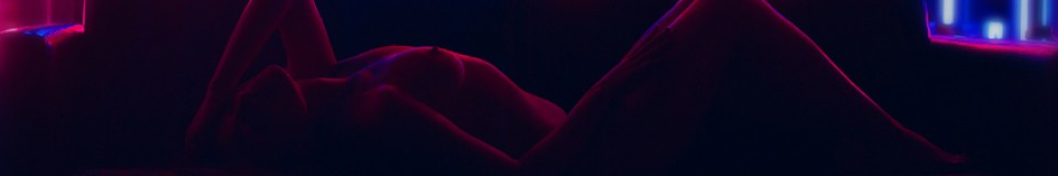 Sexy Young Woman With Sensual Lips Lying Bended Out In Neon Lights