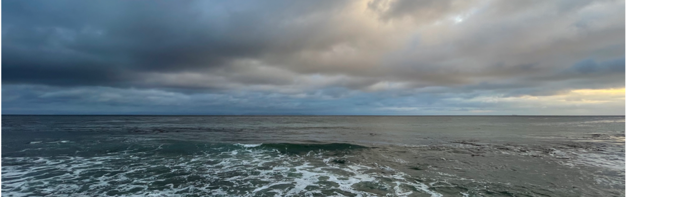 Beach View From Rocky Beach During Sunset Pacific Ocean Storm Clouds Cliffs