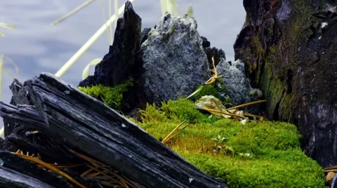 Close-ups of osennnej nature. Water, trees. grass, bark, tree, branches of shrubs.
