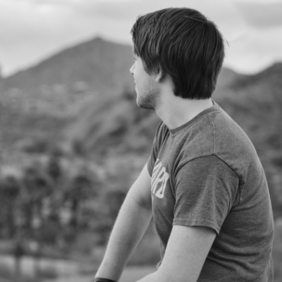 Man Enjoying The View Of The City. Enjoying The View Before Hiking Down.