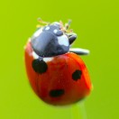 Macro Shot Of Ladybug Crawling Down Blade Of Summer Grass