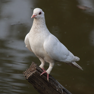 Pigeons Sitting On A Tree Trunk Drinking Water