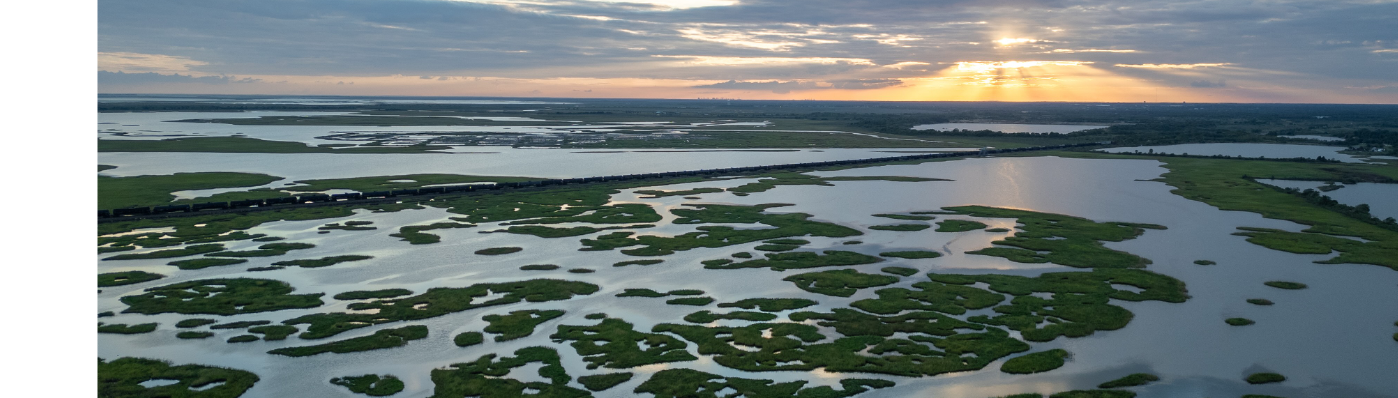 Drone Flying Over River At Sunset
