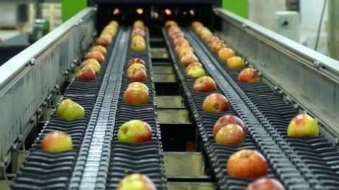 Apples in a fruit packing warehouse