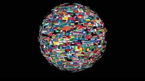World Flags. Close up and camera fly over.