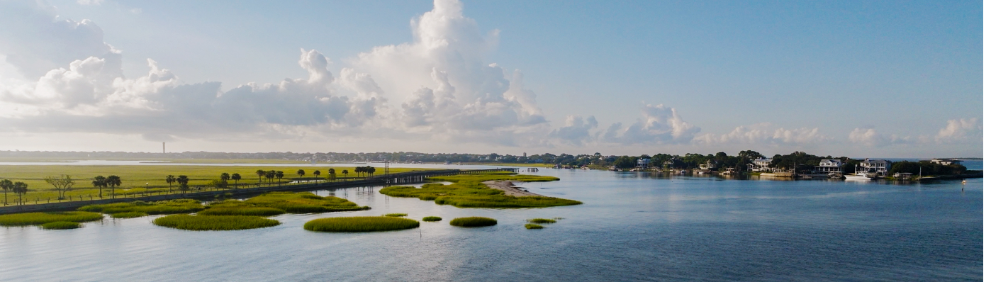 Aerial Of A Yacht On The Intracoastal Waterway In Sullivan’s Island, Sc.