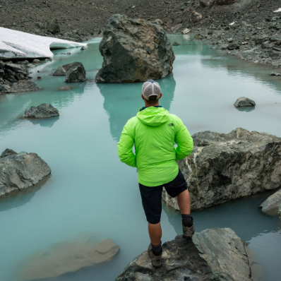 Woman Hiker Walks Through Alpine Wildflowers