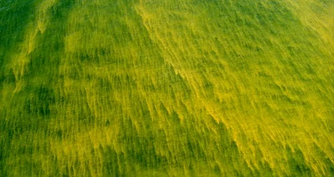 (238)Aerials over the heavy polluted Baltic Sea that blooms every year with toxic cyanobacteria. Aerial of drying lakes, Open pit ming areas and factories