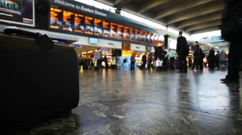 Footage of people working and travelling on the British train network.