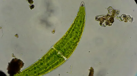 Plant cell and algae under microscope