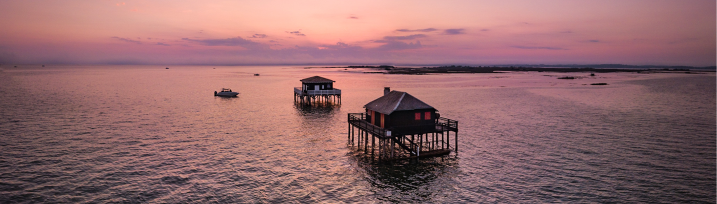 Fishermen Houses In Bassin Arcachon, Cabanes Tchanquees, Aerial View, France