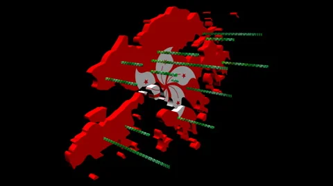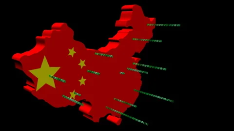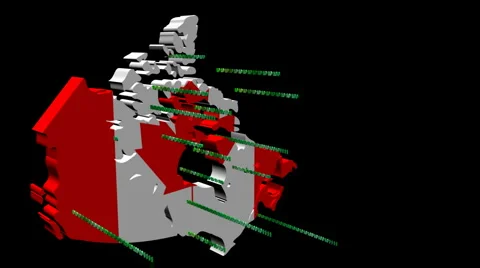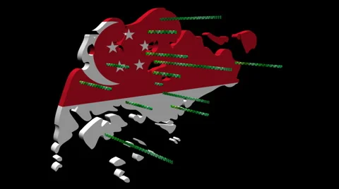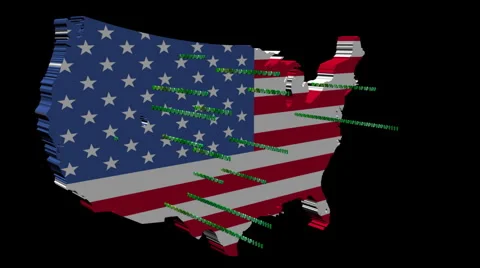 Map flags with abstract snippets of binary code flying out