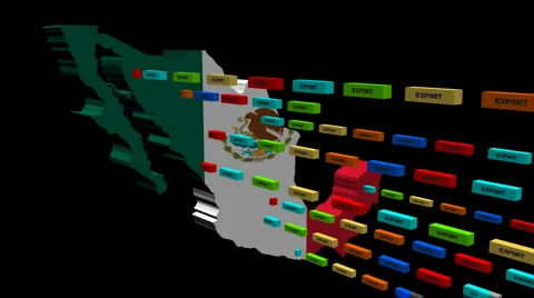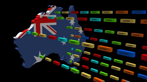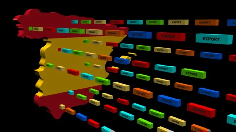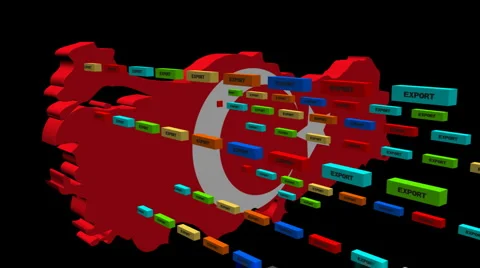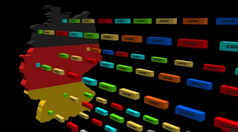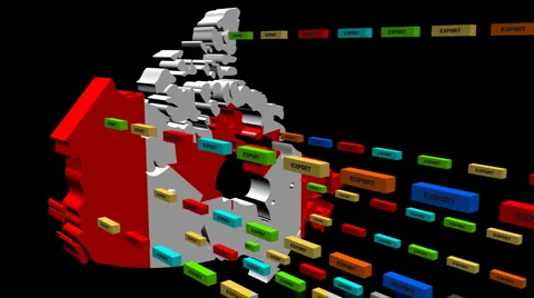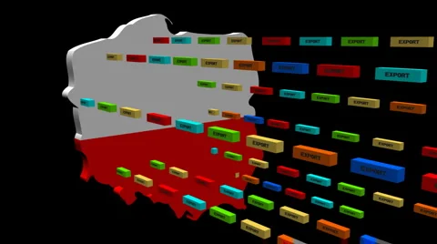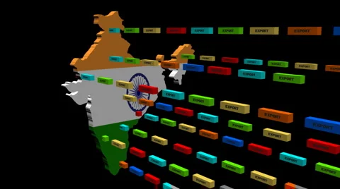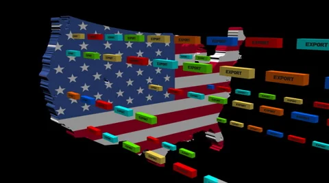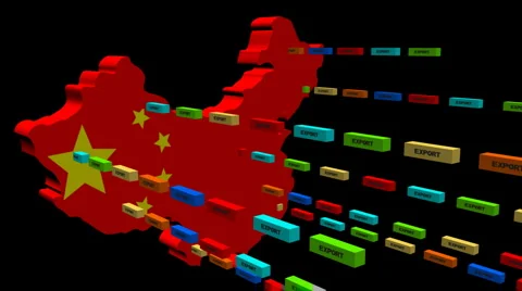 Map flags with lines of export containers flying out