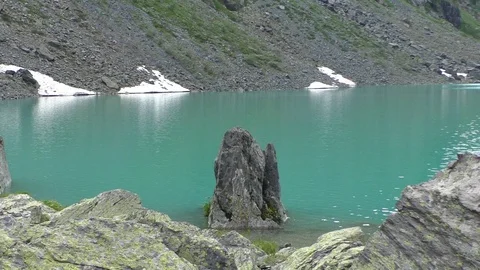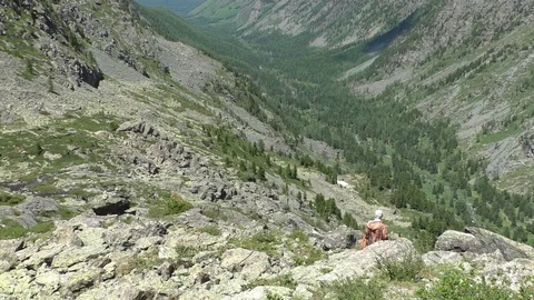 (378)Young woman with friends engaged in mountain hiking. Mountains, waterfalls, slow motion, glaciers, lakes, wading, mountain plants and flowers