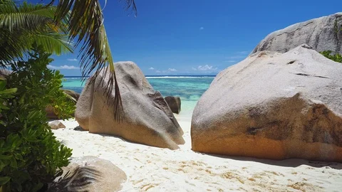 Paradise like aerial footage from Mahe and La Digue Islands