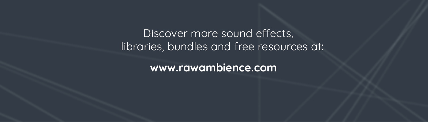 Professional Audio Engineer and Sound Designer. Here you can find professional and unique sound effects. If you have any questions, do not hesitate to contact me. contact@rawambience.com For more sound effects and libraries go to : https://rawambience.com/ https://relax.rawambience.com/