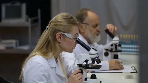 (47)Beautiful long blonde hair female doctor examining , doing medical procedure to senior ill male patient in medical office during checkup