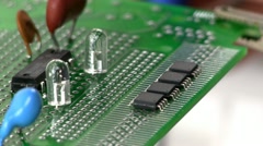 Описание: An electrical engineer modifies a circuit design by removing surface mount IC's from breadboard, by hand, using a suction tool