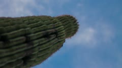 Looking up a majestic Saguaro cactus at the blue sky with misty clouds in time lapse. See alternate formats: [link]/stock-footage/11134450 [item]11134450 icon[/item][/link][link]/stock-footage/11134441 [item]11134441 icon[/item][/link][link]/stock-footage/11134436 [item]11134436