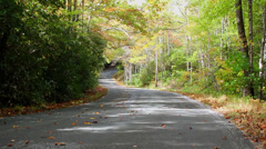 Autumn Leaves Fall Onto Sunny Roadway Video