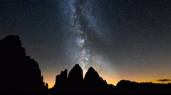 Описание: 4K UHD milky way over tre cime de lavaredo - time lapse pan shot