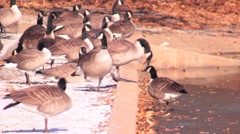 Gaggle Of Geese On The Edge Of Pond Video