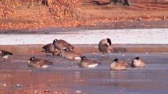 Gaggle Of Geese Resting On Icy Pond Video