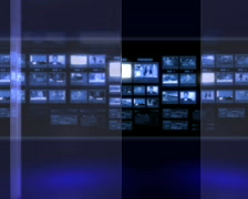 Описание: Virtual studio background with a large blue flickering monitor wall.