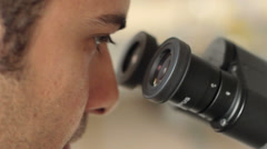 A Scientist Making Analyses In The Microscope Video