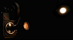 Vintage Hollywood Movie Camera And Theater Stage Spotlight With Fresnel Lens Video