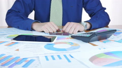Businessman Examining Business Graph And Using Touchpad. Drinking Morning Coffee.
