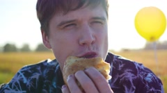 Man Eats Bread At A Picnic Video