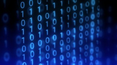 Описание: Technological Digital binary data glitch background with representation of binary code. Binary digits in different configurations on blue background. Animation.