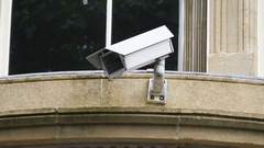 Описание: close up on security camera on a building