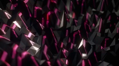 Описание: Sharp Crystal Field Loop 1E: dark landscape with depth-of-field effect of dynamic sharp rock shapes pulsating and flashing pink magenta purple edges, FullHD and seamlessly loop-able