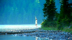 Описание: Girl relaxing on the lakeside in the mountains. Perfect smooth seamless loop.