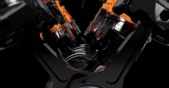 Slow Motion Close Up Working V8 Engine Animation With Explosions - Loop Video