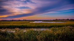 Описание: the river at sunset with canes
