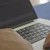 Description: Close-up of web developer's hands programming Javascript, coding HTML on laptop. View from back