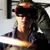Description: welding man mask, closeup with sparks