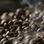 Description: Roasted coffee beans fly and spin on a black background in slow motion