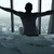 Description: man getting out of bed and wearing hotel slippers