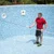 Description: Faceless man catching garbage in the pool with a net