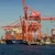 Animation Of Statistics Processing With Lines Over Shipping Yard In Background Video
