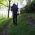 Description: The guy in the spring forest walks on the bridge.