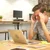 Description: Aggressive man at work, Computer failure, error, stress at work concept. Mad impulsive crazy adult guy breaks down laptop, office worker pushing monitor and keyboard
